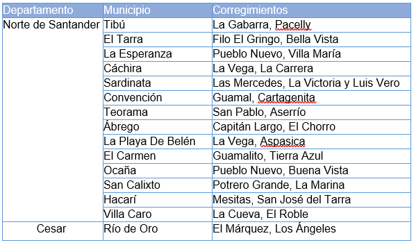 - Ocho (8) laboratorios de investigación – creación en igual número de municipios: 1.034 participantes de los municipios de Hacarí, La Playa, Villa Caro, La Esperanza, Río de Oro, El Carmen, El Tarra, y Convención (2018 – 2019)