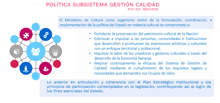 Para la implementación, mantenimiento y fortalecimiento y articulación entre el modelo y el sistema integrado, el Ministerio de Cultura mediante la Resolución 0248 del 13 de junio de 2023 "Por la cual se actualiza la conformación del Sistema Integrado de Gestión Institucional - SIGI - y sus Comités, se articula el SIGI al marco de referencia del Modelo Integrado de Planeación y Gestión - MIPG -, se asignan funciones a los órganos de asesoría y coordinación del Ministerio de Cultura, y se adoptan otras disposiciones". Consulta este acto administrativo aquí.